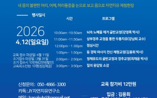 2026. 4. 자연치유학박사 특별세미나 공지 자연치유 특별공개 세미나를 다음과 같이 개최합니다. 관심…