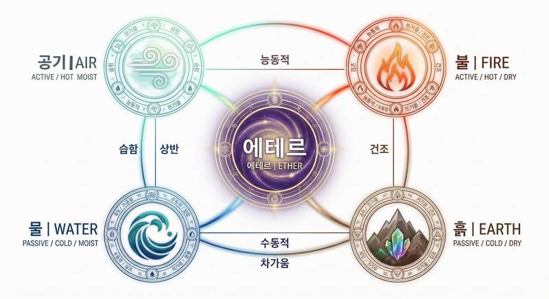 요약하자면, 에테르는 "모든 에너지가 시작되는 고요한 중심점"이며, 육체와 정신이 자유롭게 움직일 수 있도록 '여백'을 만들어주는 필수적인 원소입니다.