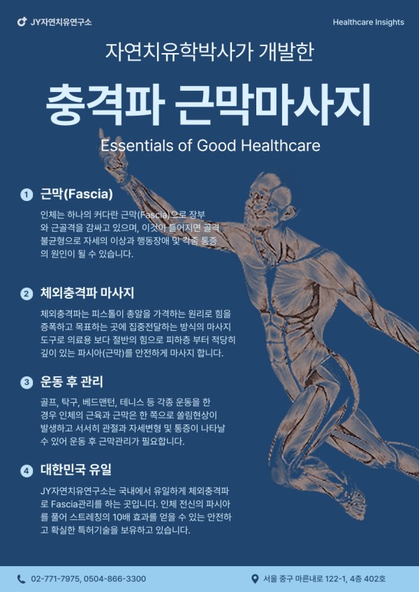 특히 근골격에 대한 연구로 파시아(Fascia)관리를 정확하고 효율적인 방법으로 충격파를 활용하는 방법을 연구개발하였습니다.